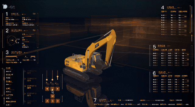 • 前進後退 — 用戶可以通過鍵盤 wasd 實現前後左右,或者點擊 2D 界面 WASD 來實現挖機的前進後退。
