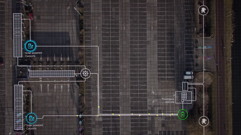 為推行永續能源系統,Smart Solar Charging 專案已執行十年之久。希望可透過該專案讓在地太陽能利用 V2G(Vehicle-to-Grid)技術供給電動車與電網電力,除了可以打造靈活的電力儲存系統,還可以讓充電座變成虛擬電廠,沒有電動車進站補充電力、或是電費過高時,電池電力就可分配給中央電網。