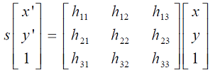 OpenCV中濾除誤匹配對採用RANSAC算法尋找一個最佳單應性矩陣H,矩陣大小為3×3。RANSAC目的是找到最優的參數矩陣使得滿足該矩陣的數據點個數最多,通常令h33=1來歸一化矩陣。由於單應性矩陣有8個未知參數,至少需要8個線性方程求解,對應到點位置信息上,一組點對可以列出兩個方程,則至少包含4組匹配點對