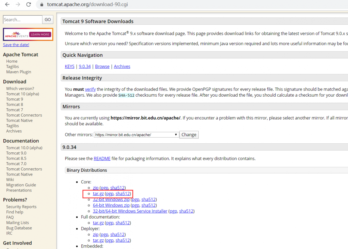 3.tomact包 下載地址 https://tomcat.apache.org/download-90.cgi