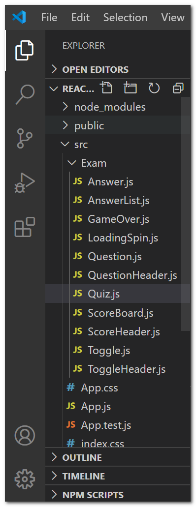 在項目src目錄下新增Exam目錄,Exam目錄中新建Quiz.js
